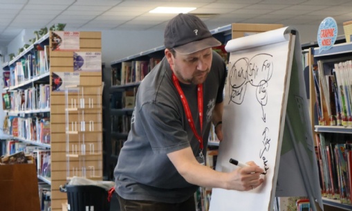 During Period 5, Steven ran a lively workshop in the library with a group of Key Stage 3 students. The fast-paced session was filled with collaboration, improvisation, and imagination, as students built characters, developed worlds, and shared their own creative voices.