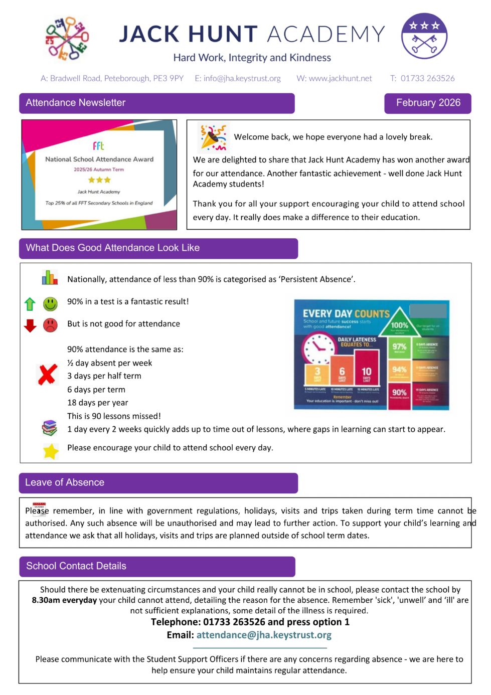 All previous editions can be found via - Jack Hunt Academy Attendance Newsletter