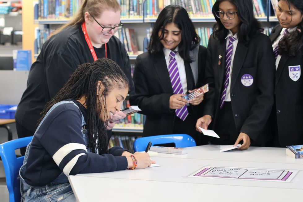 During her talk, Angie Thomas shared insights into her journey as a writer, reflecting on her life growing up in America, the books that inspired her as a young reader, and the path that led her to becoming a globally recognised author. Students were particularly fascinated to hear how she created the imaginative world of Nic Blake, and how her personal experiences and passions shaped her storytelling.