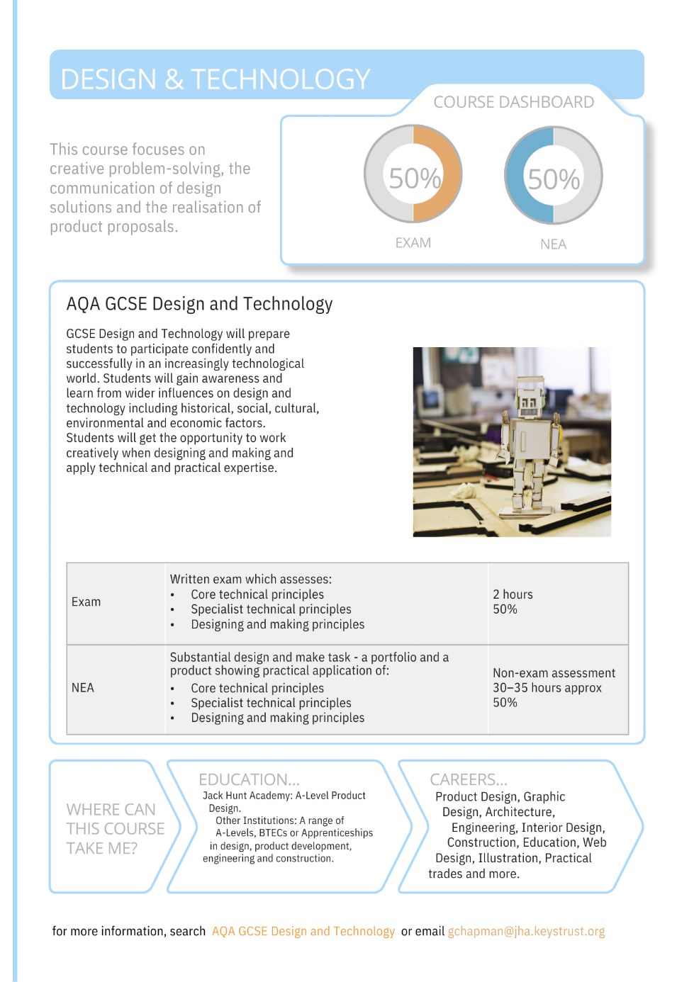 • Examination courses include:- AQA GCSE Design and Technology, WJEC Level 1 / 2 Hospitality and catering.