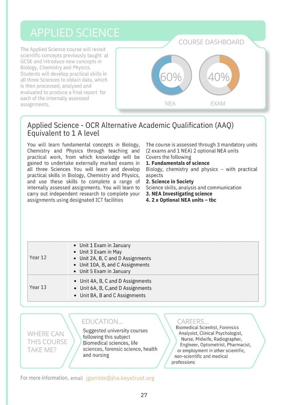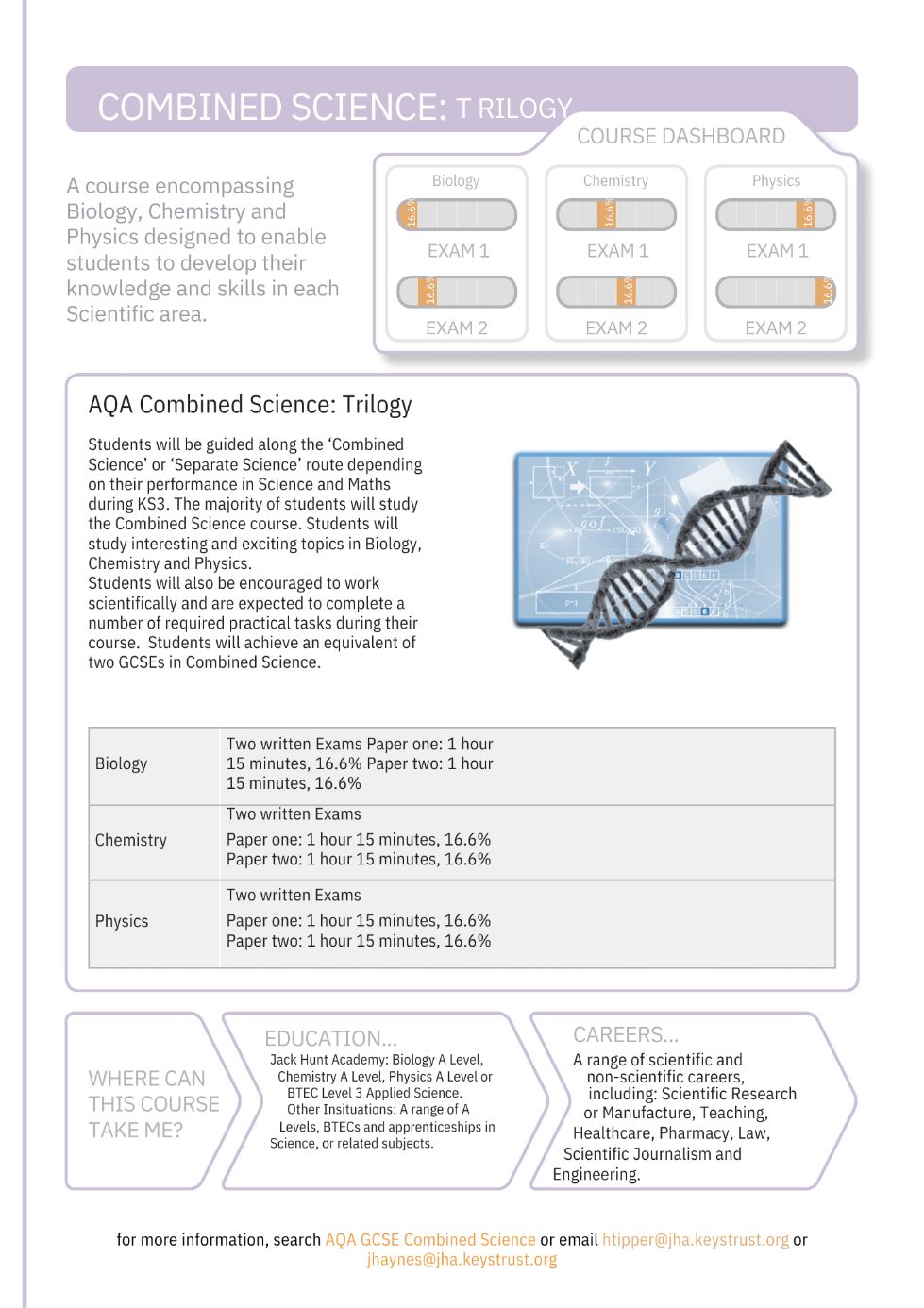 • During the first part of the year students will review, apply and extend their knowledge across topics introduced in year 7 & 8. From Easter students will start to explore the knowledge and skills needed to be successful in AQA GCSE Combined Science.